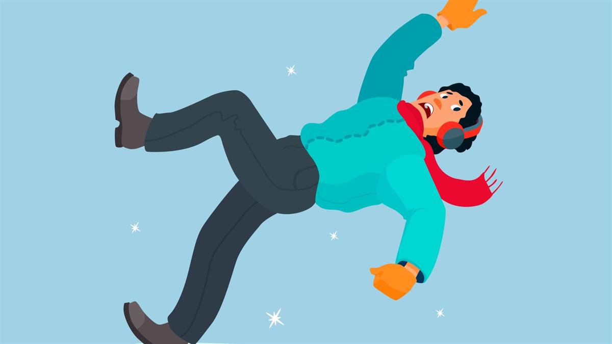 • Om du kjenner at du er i ferd med å falle og rekk å tenkje deg om: prøv å lande på rumpa eller ryggen. Halde armane inntil kroppen og bøy hovudet mot brystet (om du fell på ryggen).